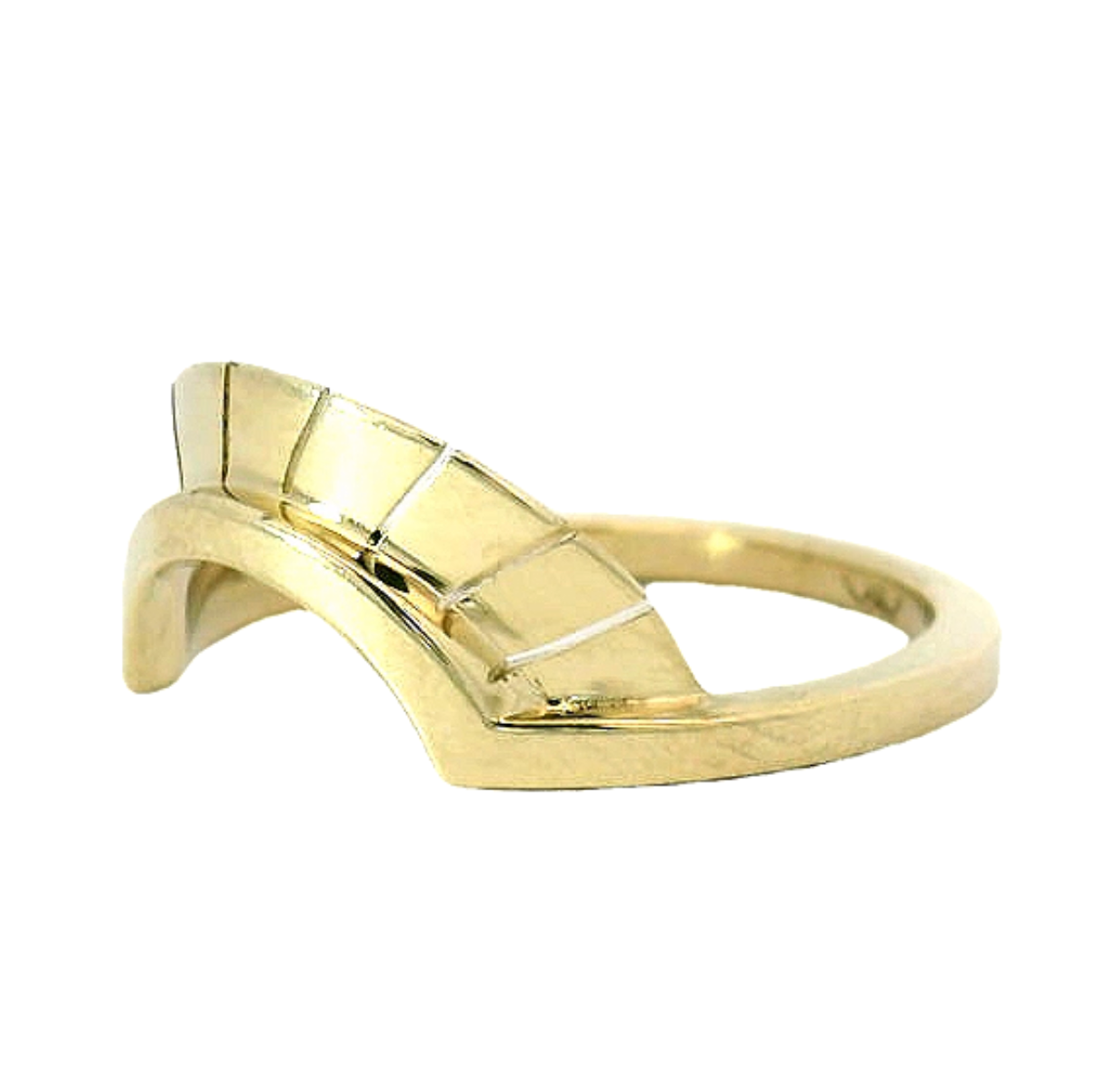 A stunning, serrated halo of solid 14k yellow gold to perfectly hug our Cerclen or Orion rings. This ring is a size 7. It can be resized up or down 3 sizes.