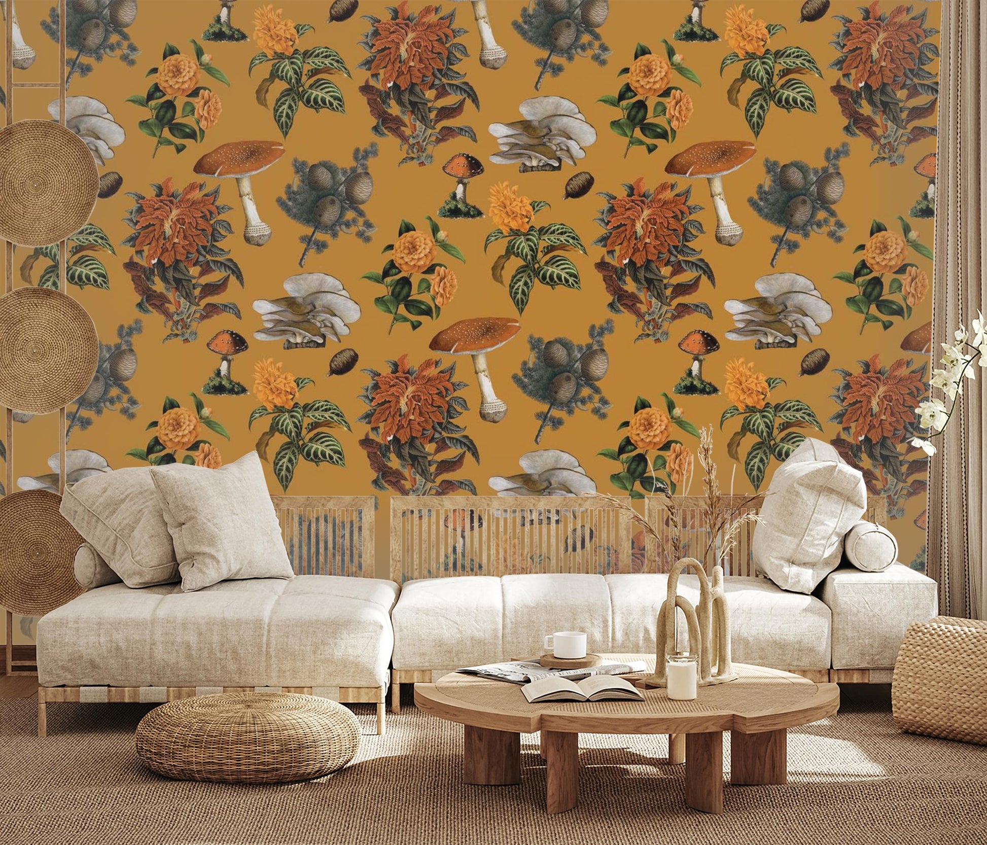 Transform your home into a whimsical and botanical paradise with the Shrooms wallpaper. Featuring beautiful vintage illustrations collaged together by Samantha Santana, this wallpaper is a must-have for any plant and mushroom enthusiast. Easy to install with both peel and stick vinyl and traditional pasted options, you can create your dream space in no time. And the best part? It's completely removable!