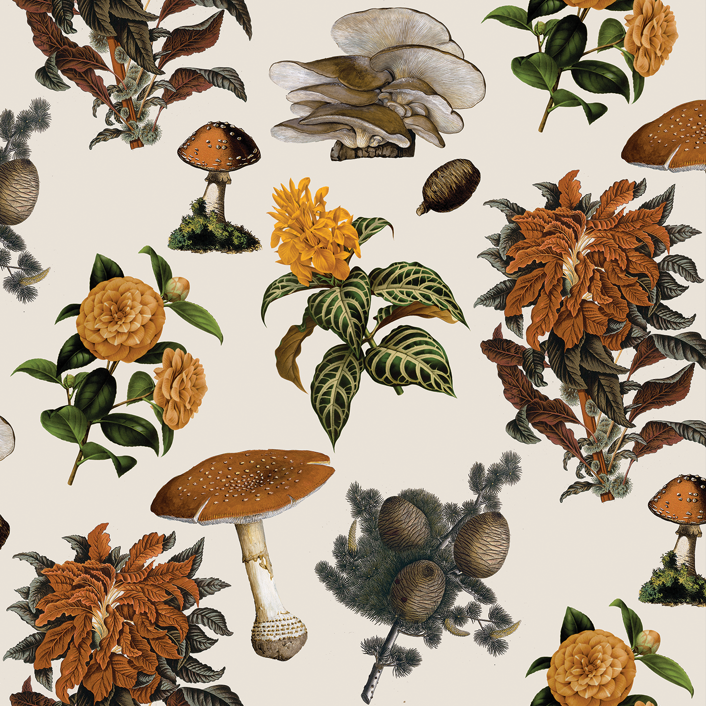 Transform your home into a whimsical and botanical paradise with the Shrooms wallpaper. Featuring beautiful vintage illustrations collaged together by Samantha Santana, this wallpaper is a must-have for any plant and mushroom enthusiast. Easy to install with both peel and stick vinyl and traditional pasted options, you can create your dream space in no time. And the best part? It's completely removable!