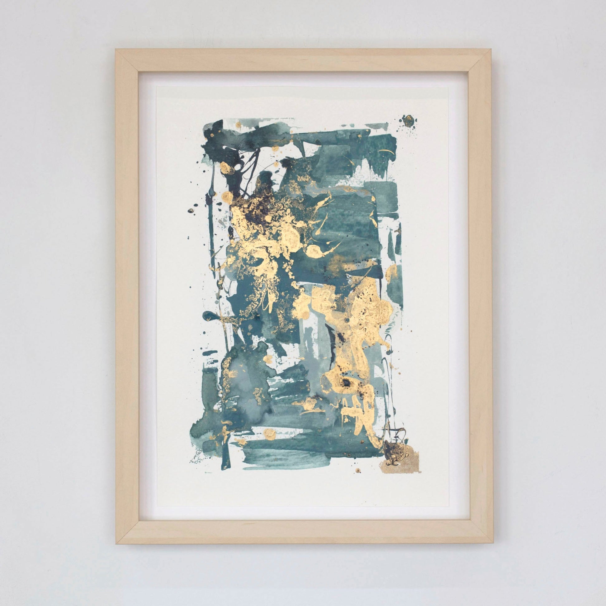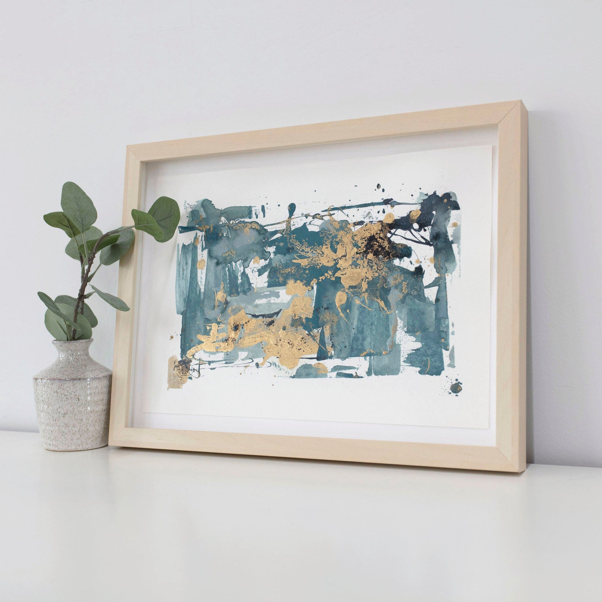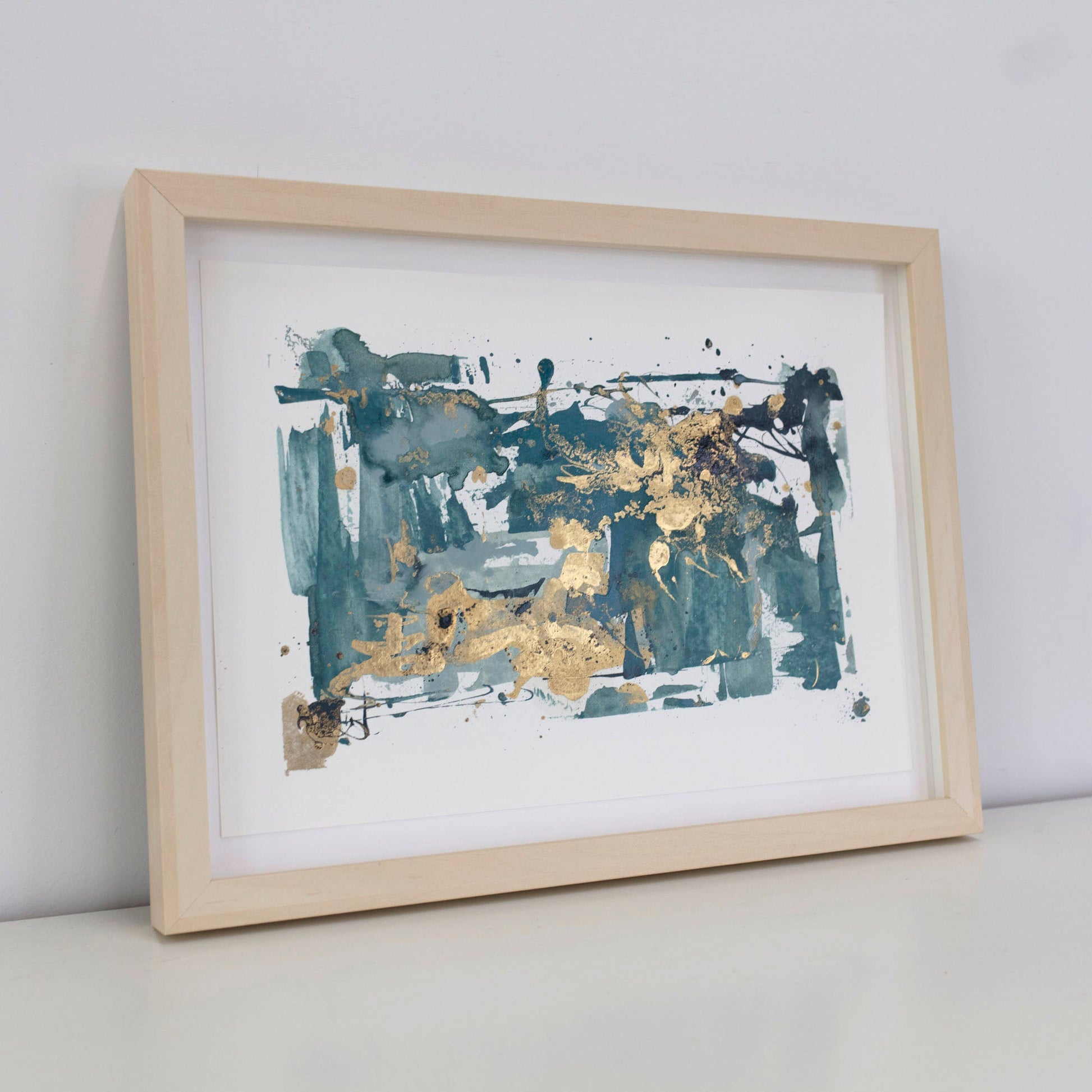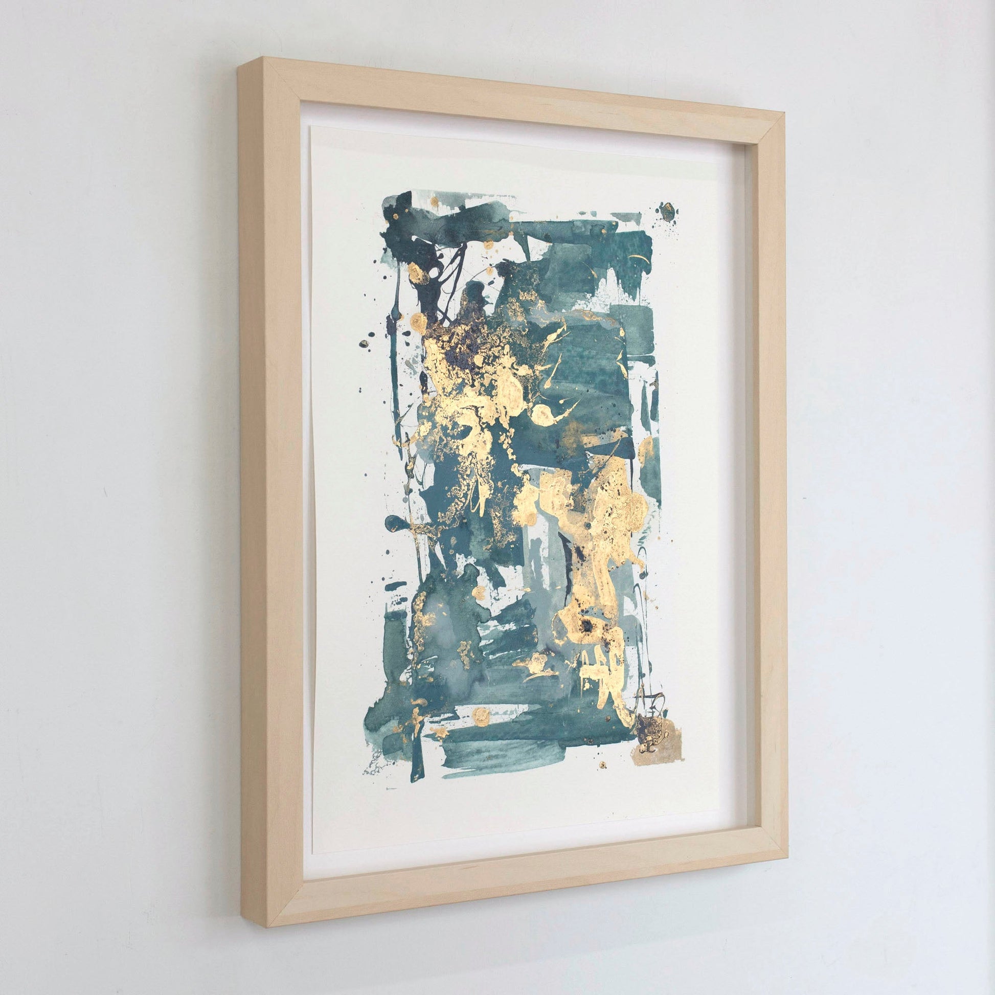 Silent Rush captures the feeling of something powerful moving just beneath the surface. With layered teal green washes and fluid gold gestures, this abstract composition evokes the hush of wind through trees or water carving through stone—quiet but unstoppable.