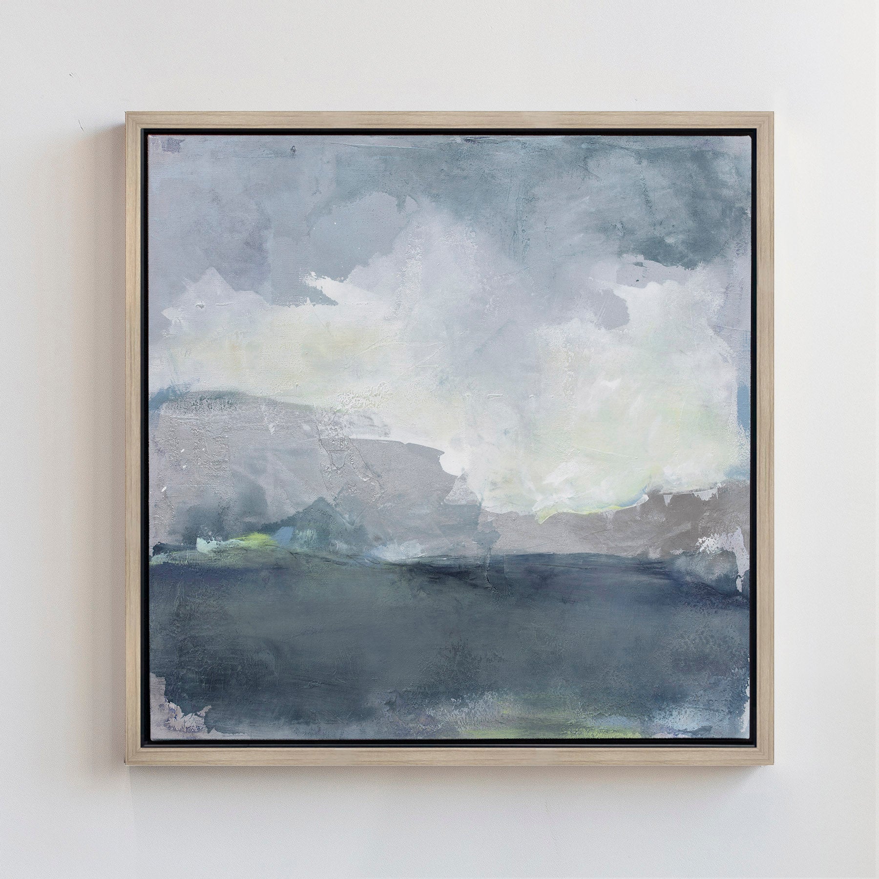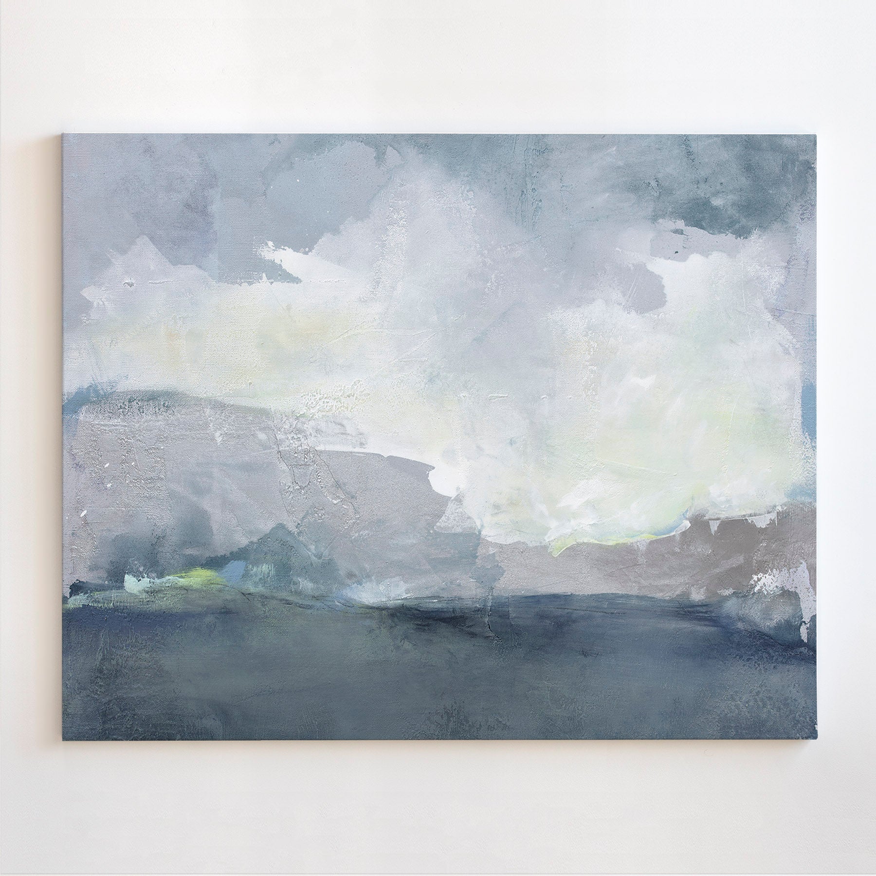 This nautical landscape is filled with light and movement. Smokey blue tones combine with fresh white and soft gray allowing for a subtle hit of lime to peek through.