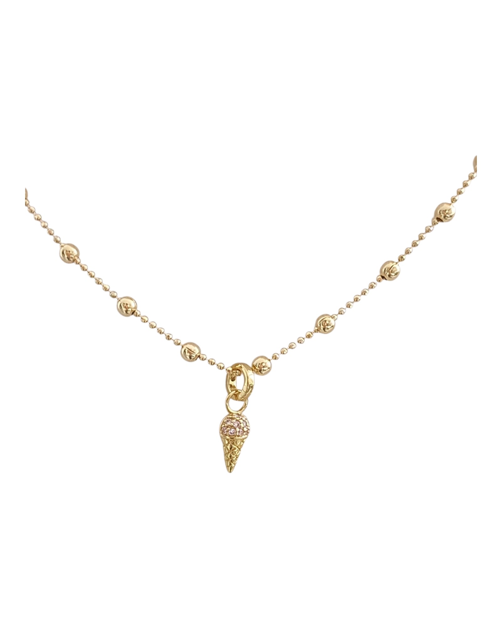 Add a sweet touch to your style with the SIRIED Ice Cream Necklace. This playful 16" necklace features a charming ice cream pendant, crafted from hypoallergenic materials for sensitive skin. The 18" gold-filled chain adds a warm, lasting shine, perfect for everyday fun and flair.
