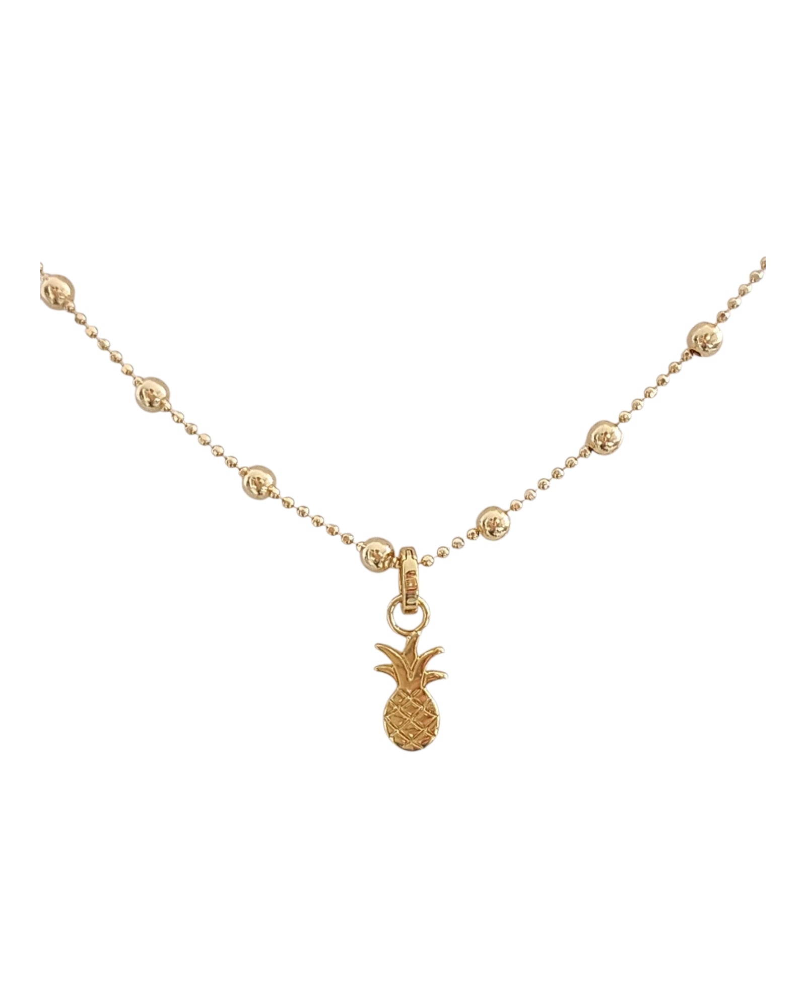 Add a splash of fun to your look with our best-selling ball chain necklace featuring a playful pineapple charm. Made from hypoallergenic 18k gold-filled material, it’s ready to wear and perfect for those who love chic, carefree style. Lightweight and comfortable, this necklace brings a sunny vibe to any outfit while keeping things stylish and easygoing.