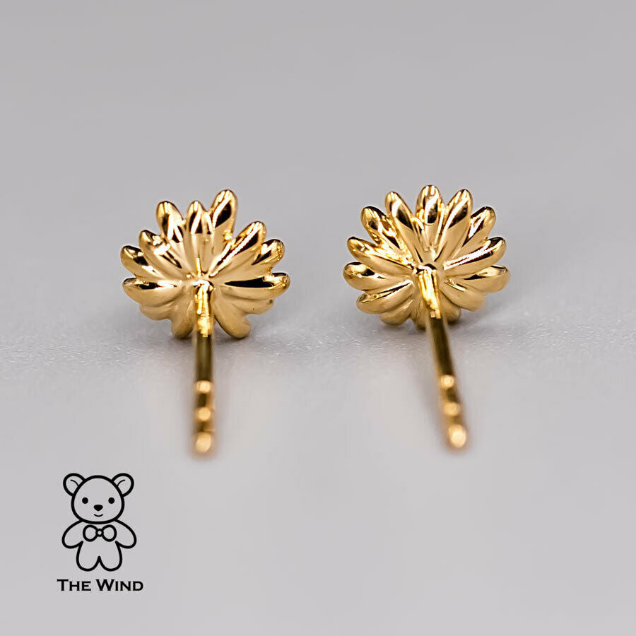 Small Marguerites Flower Stud Earrings with Diamond 18K Yellow Gold.