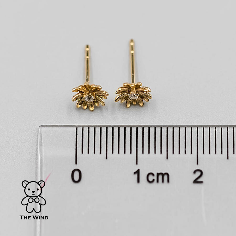 Small Diamond Marguerites Flower Stud Earrings 18K Yellow Gold