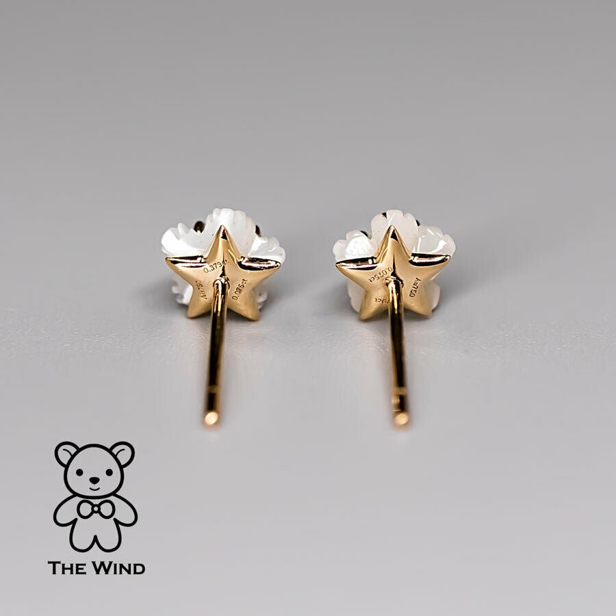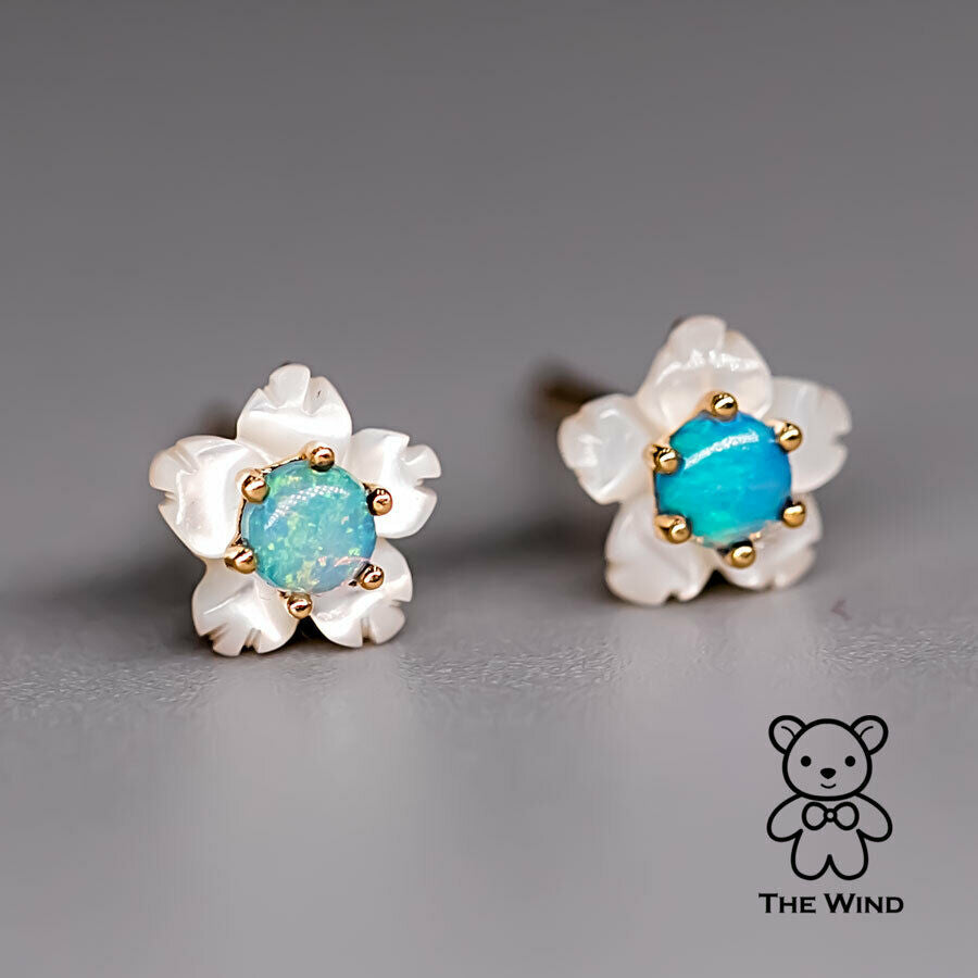 Small Flower Australian Solid Opal & Mother of Pearl Stud Earrings 18K Yellow Gold