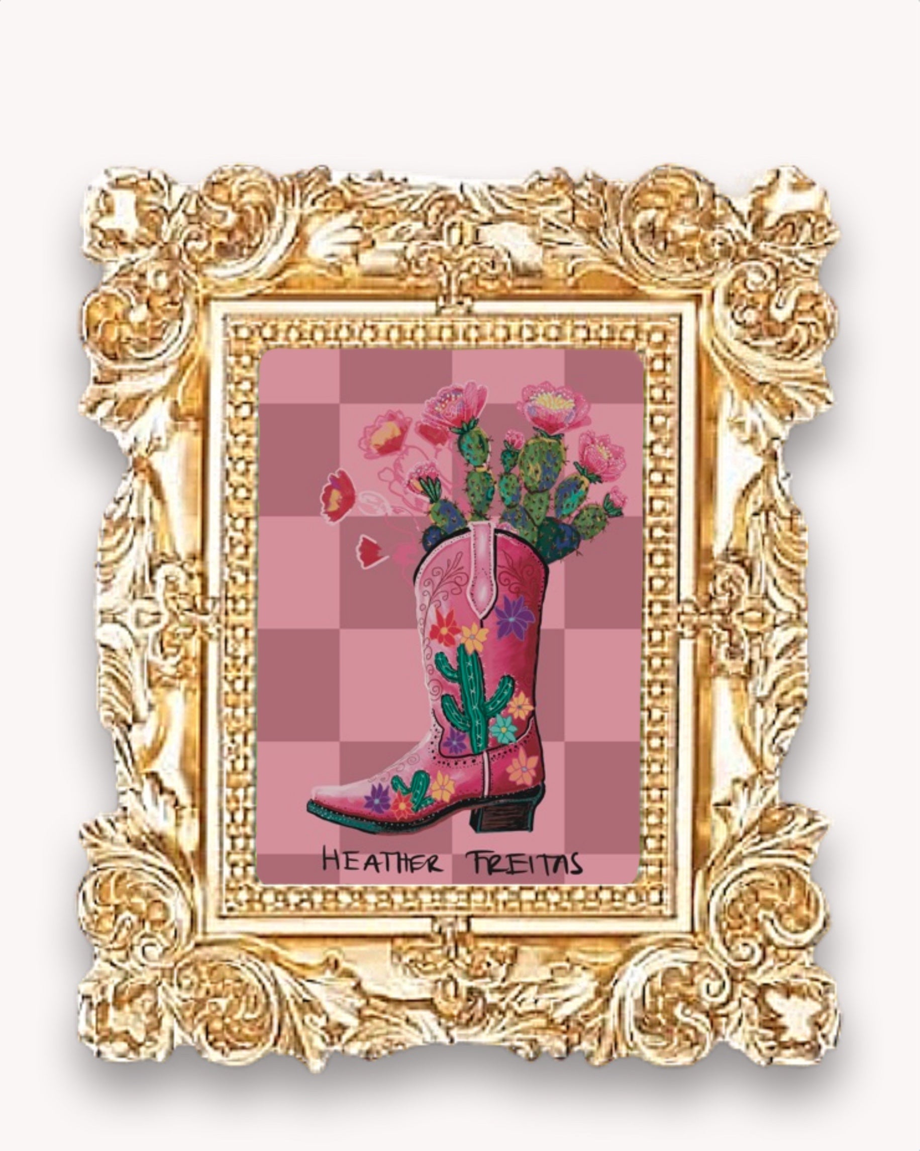 Southwest Cowgirl Boot Framed Magnet ( Small )