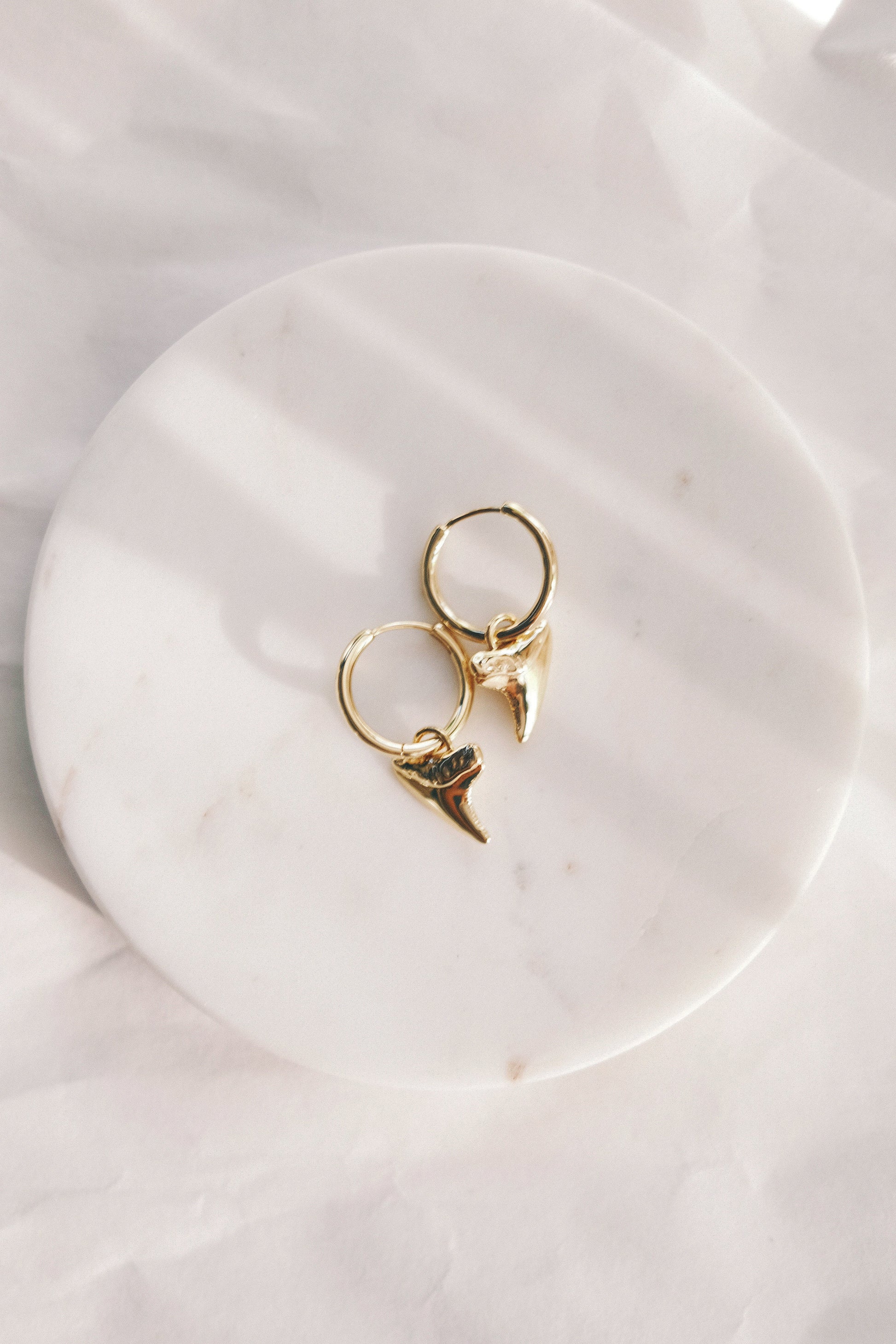 ✧ Gold plated brass hoops and shark tooth OR Sterling Silver Hoops and shark tooth