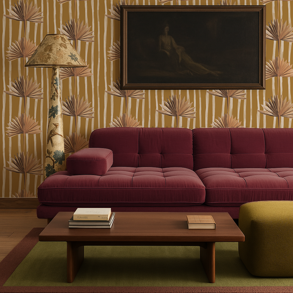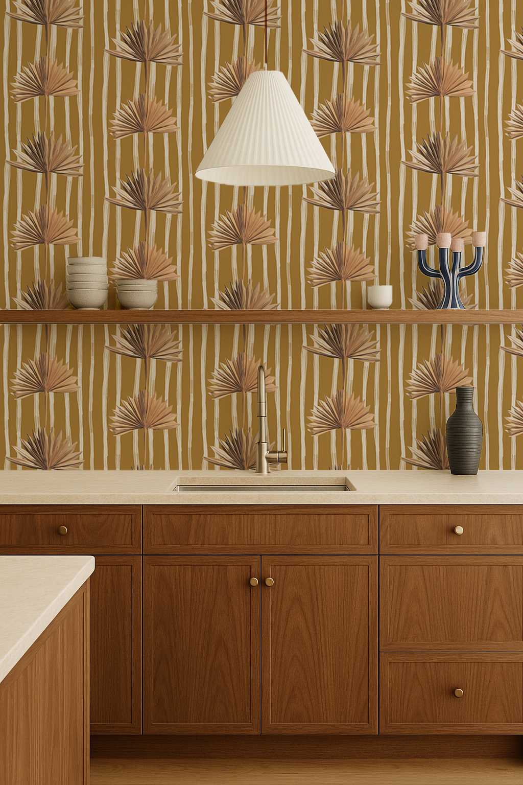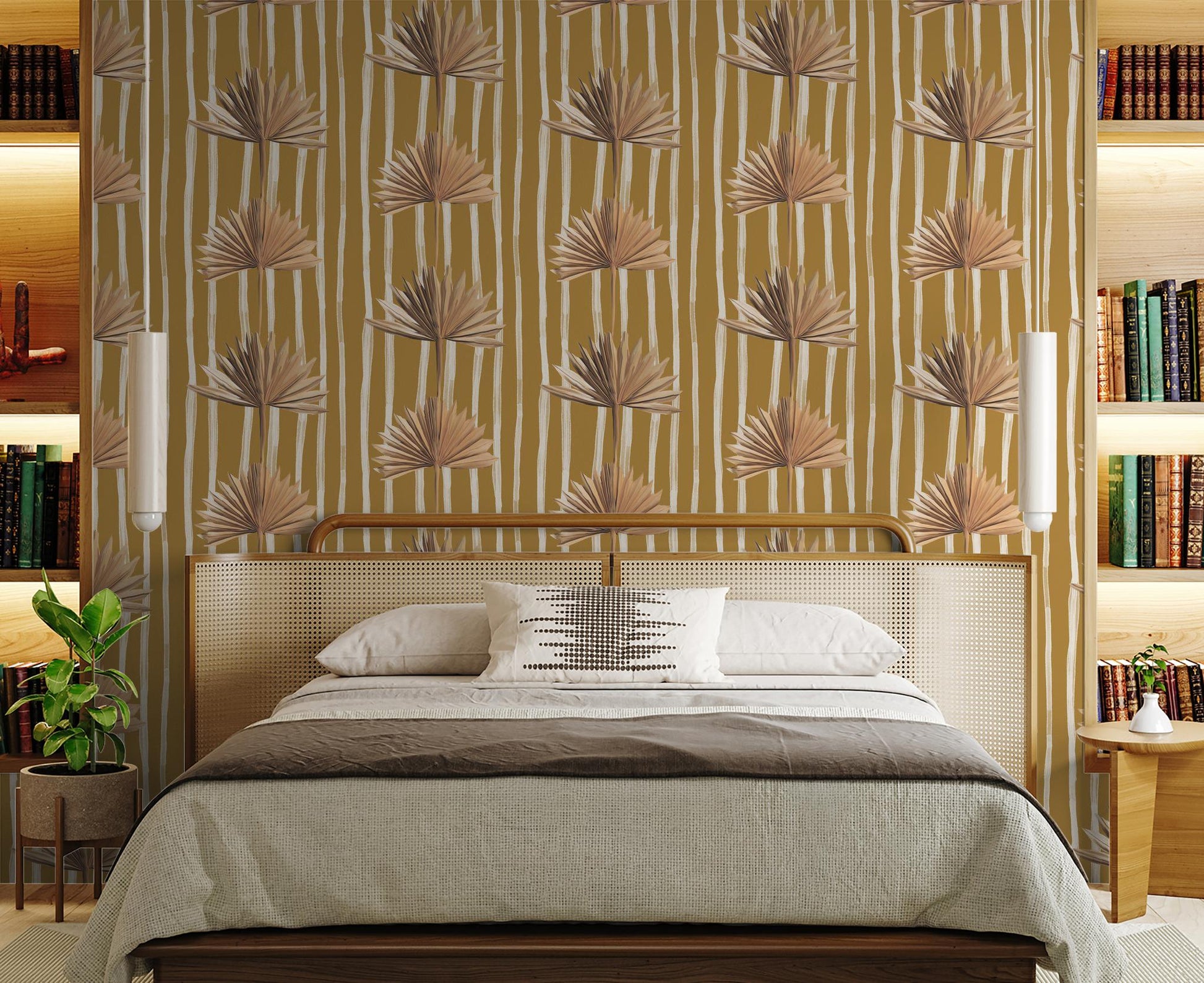 Stripey Palm Wallpaper, mustard