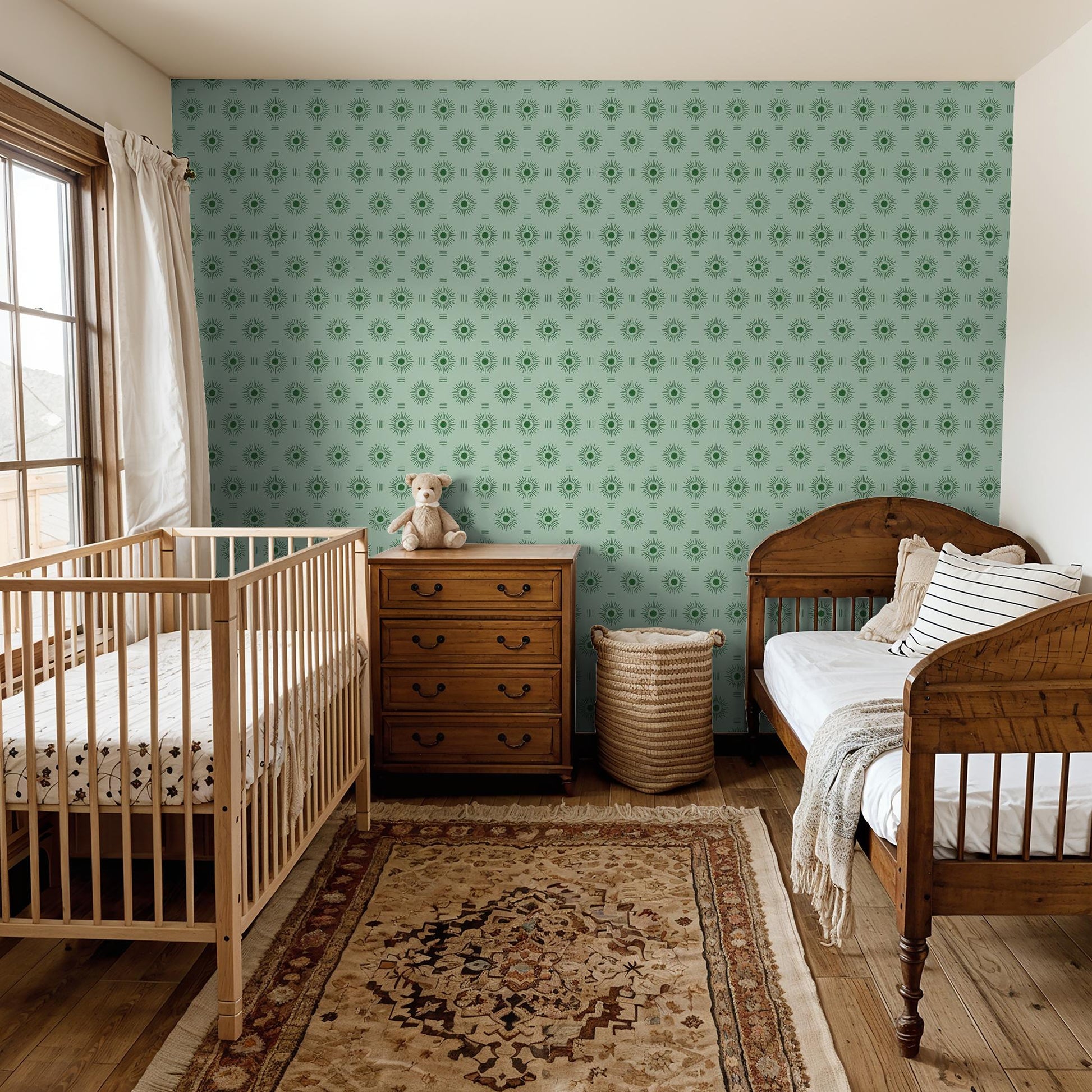 Sun Rays Wallpaper, mint & green