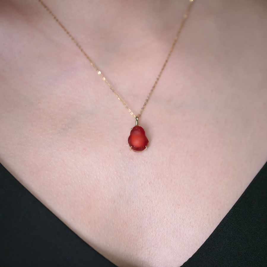 Super Adorable Handcarved Penguin Egg Fire Opal Necklace 18K Yellow Gold