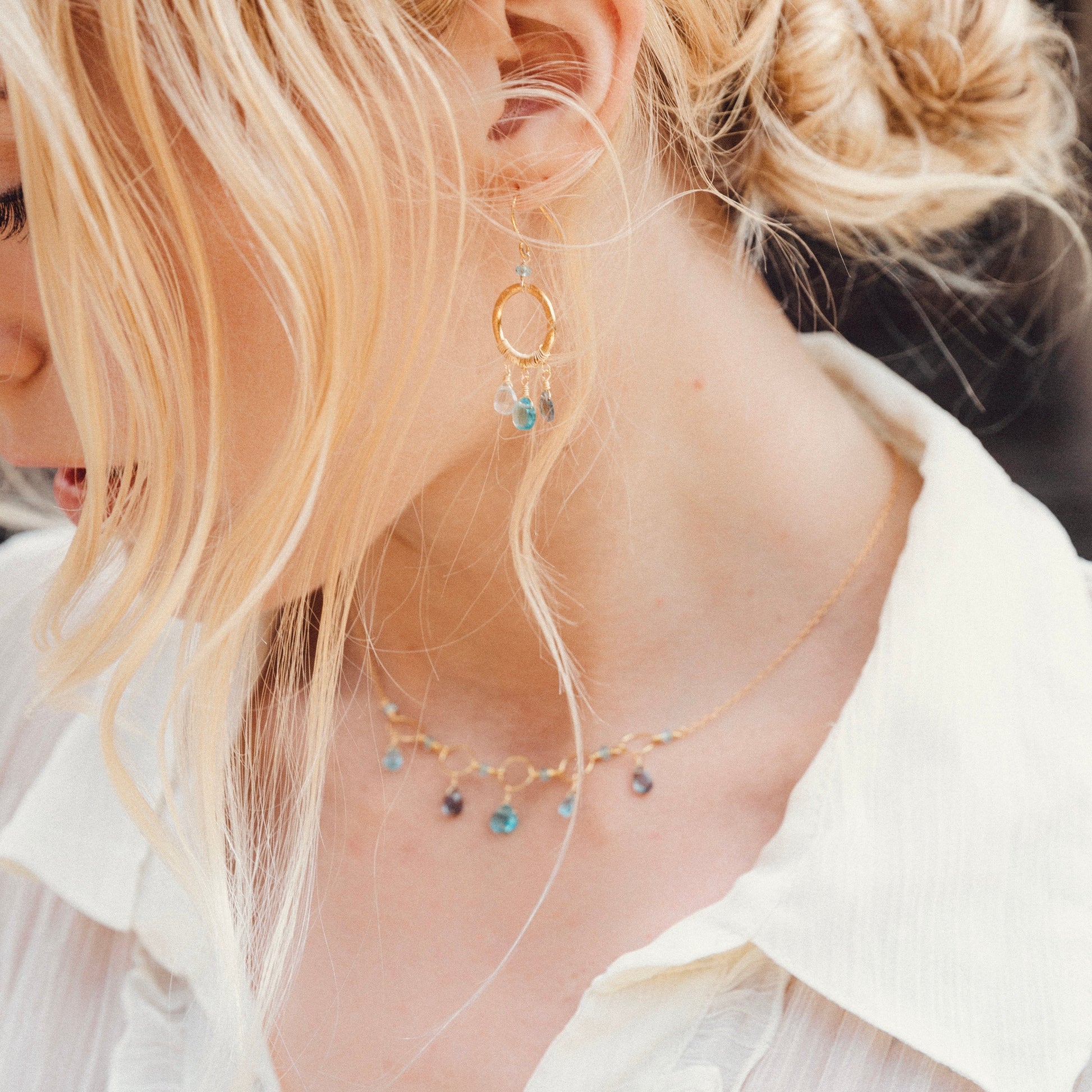 Calling all beautiful dreamers, our handmade Boho Minis are inspired by dream catchers. This lightweight, ready-to-wear style features a mix of superior quality blue gems in Aquamarine, Iolite, and Aquamarine Quartz.
