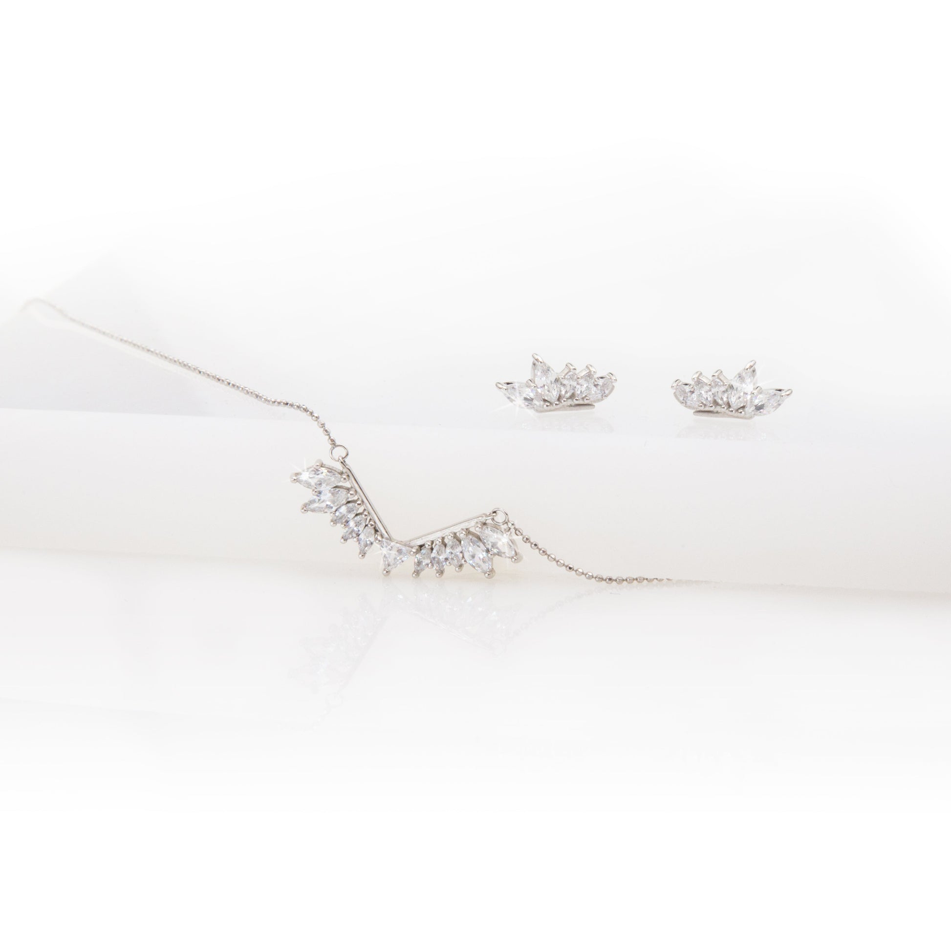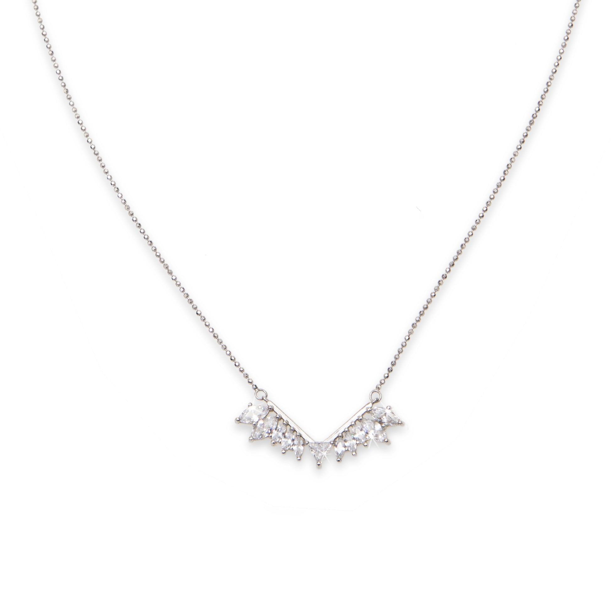Sterling silver chain and 1.1" sterling silver pendant set with cubic zirconia. 18" in length. #N291S.
