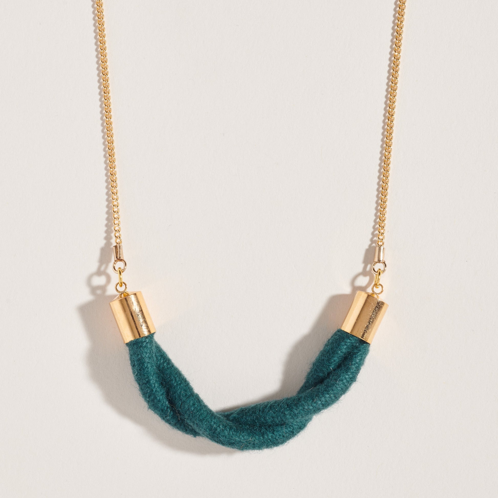 Connect your favorite fiber knot or twist with a delicate chain. Wear as a singular pendant or layer with other chains. Shown in the limited edition Pine Green Cotton (not currently available).