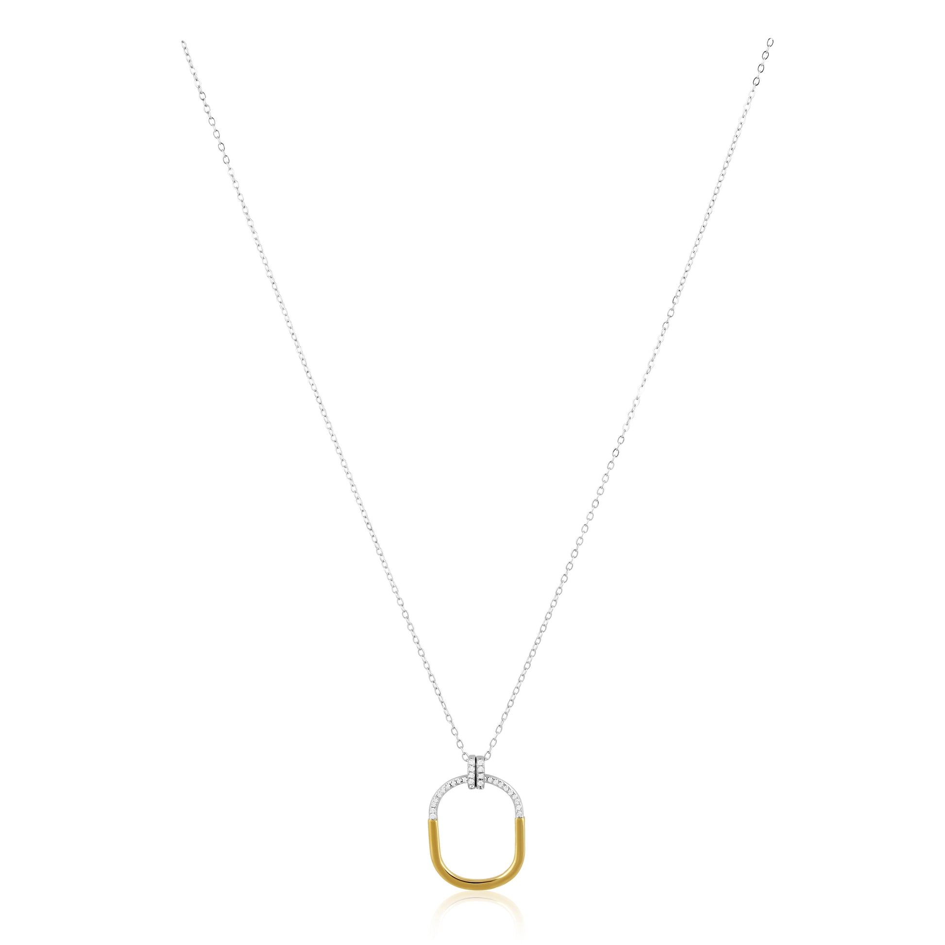 Indulge in the everlasting charm of our Two Tone Eternity Necklace. With its simple yet elegant design, this necklace effortlessly combines both silver and gold tones to exude an air of luxury. Enhance any outfit with this timeless piece and make a statement of sophistication.