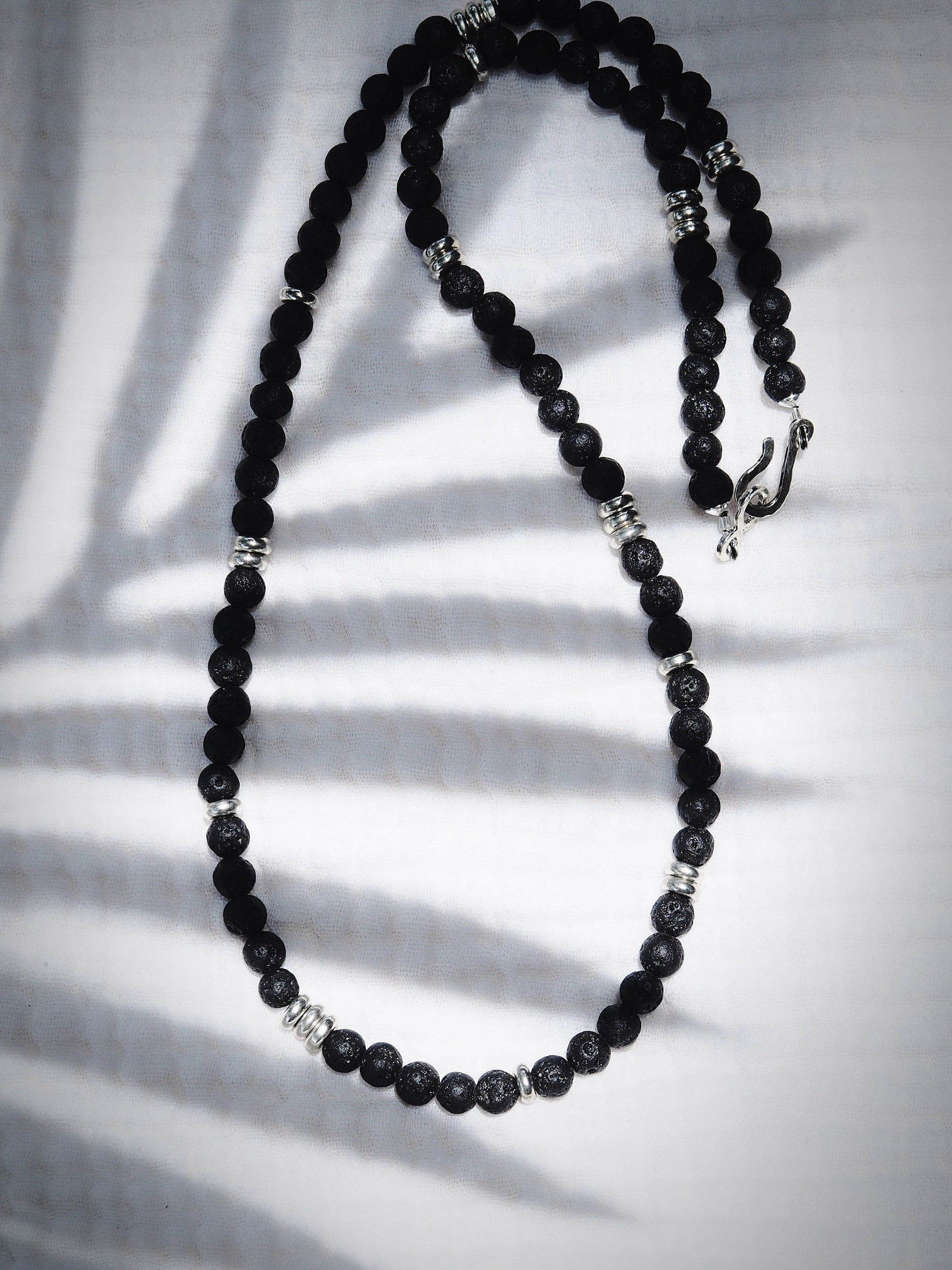 Classic black lava bead necklace with silver accents. Designed to be gender inclusive, this lava necklace is a Hawaii staple. Choose your length for the perfect fit.