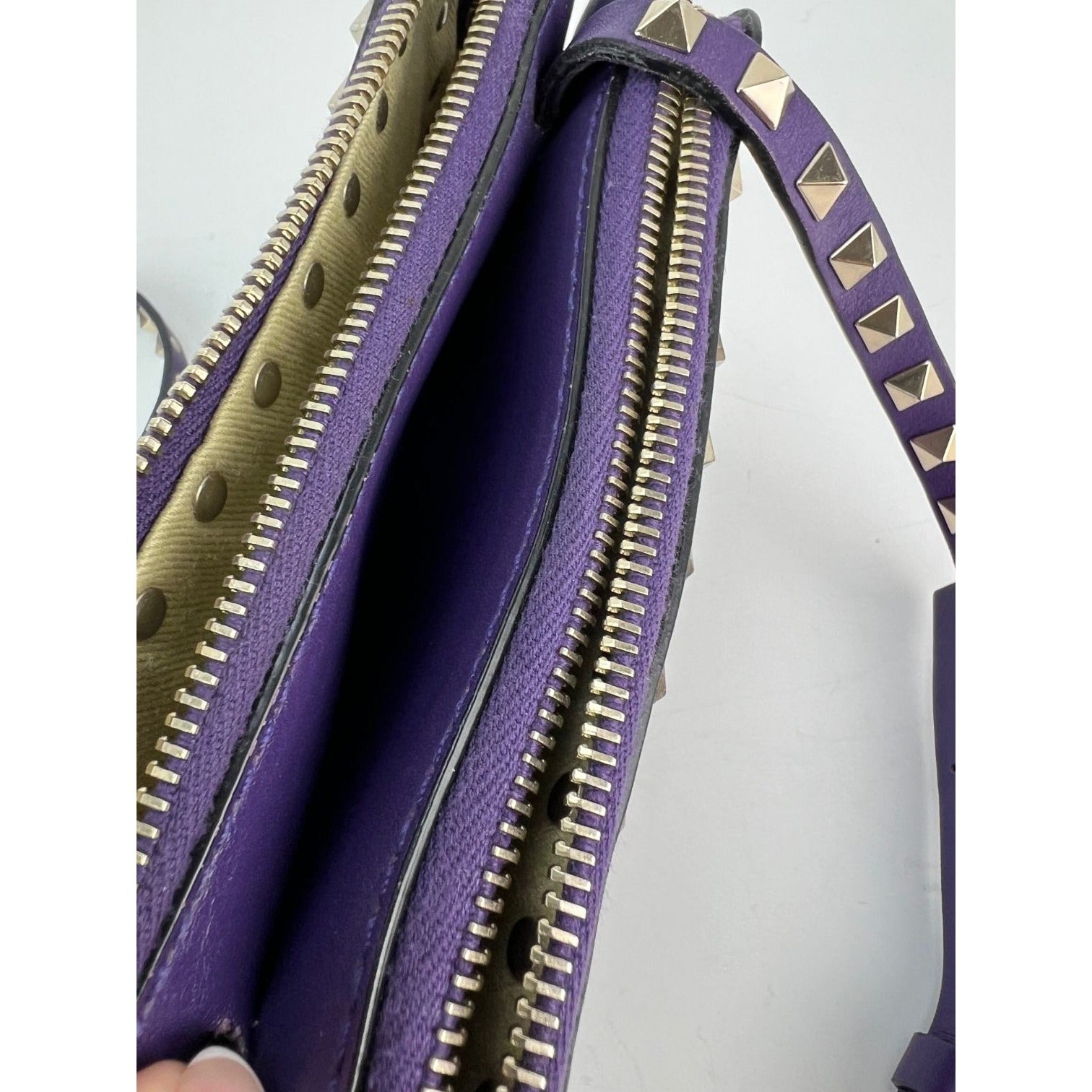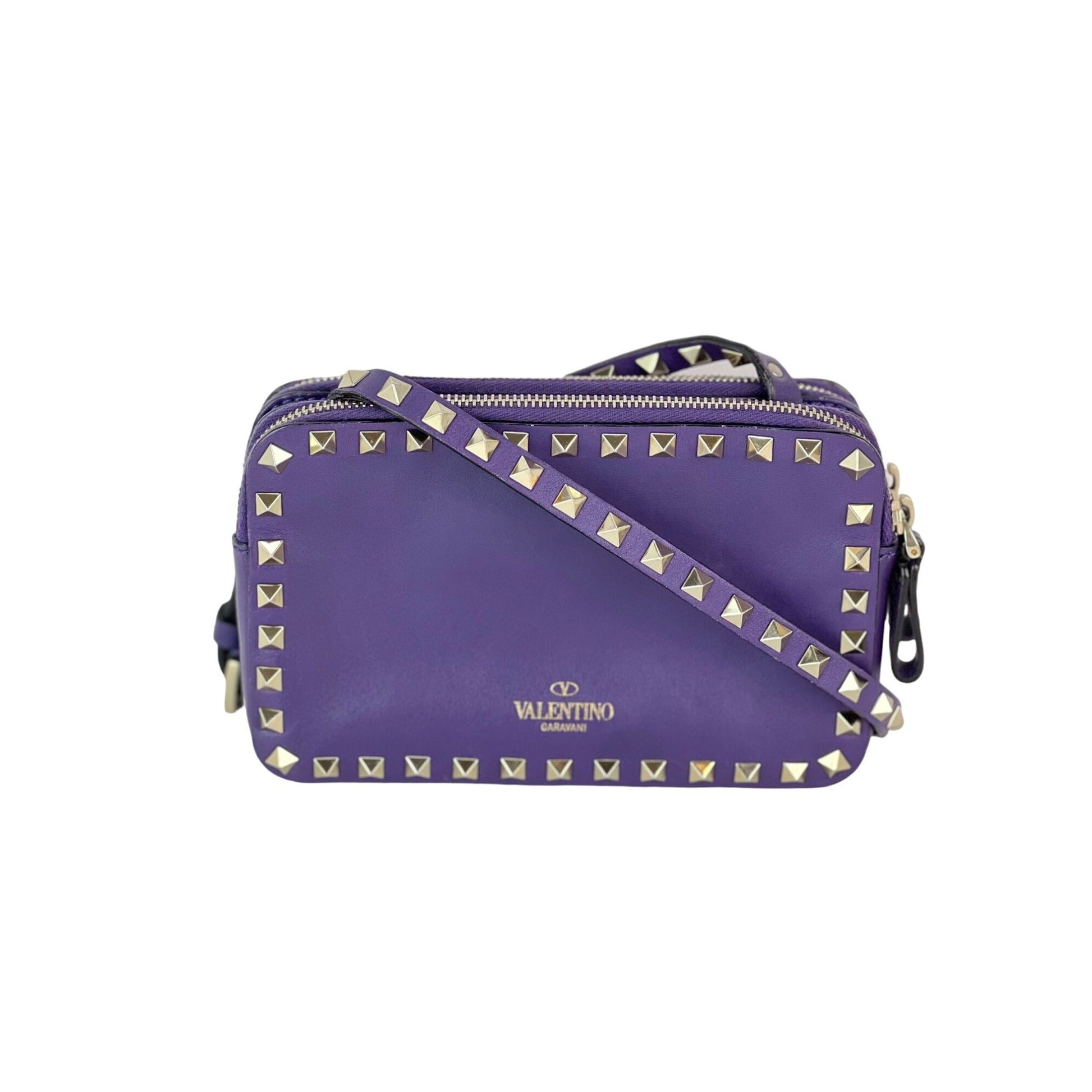 Valentino Rockstud Double Zip Purple Leather Crossbody Bag