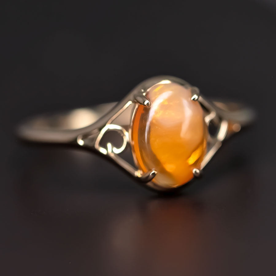 Vintage Inspired Egg Fire Opal Engagement Ring 14K Yellow Gold