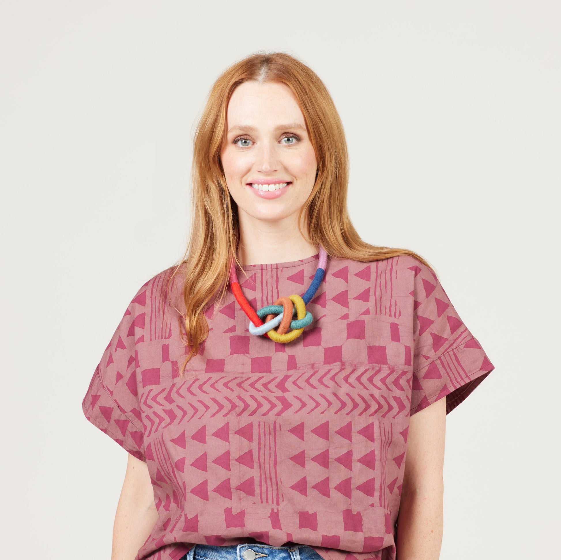 Celebrate Pride with this asymmetrical water bowline knotted necklace in a rainbow of colors.