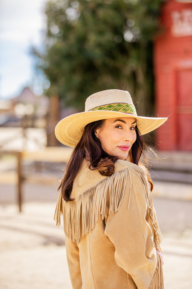 Handcrafted in Guatemala, these Palm Leaf Straw Hats are durable and offer full sun-protection for your everyday activities. Modeled after our best-selling Western Alpaca Wool Hat, the unisex Straw Western Hat is a traditional “Western Style” hat with a removable Quechua textile intention band. You choose your own intention band. Available in sizes S, M, L & XL for men and women.