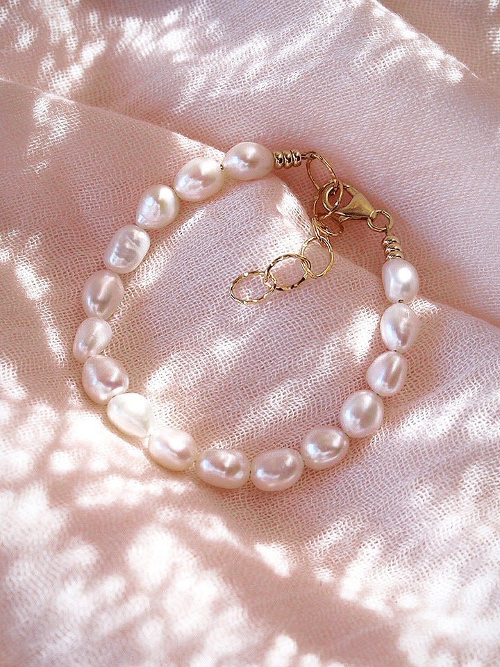 This shimmering porcelain white freshwater pearl bracelet is a must have staple. Wear this gold pearl bracelet to remind yourself of the soothing sands of Hawaii.