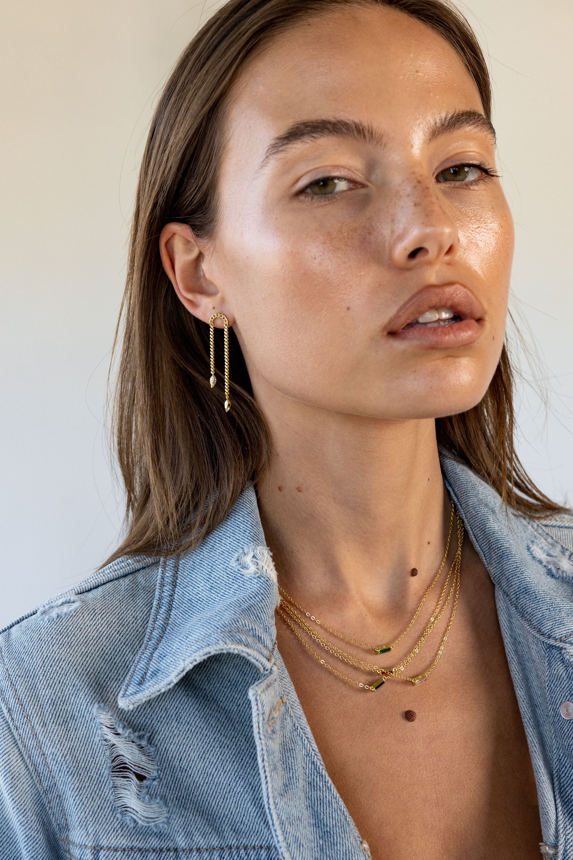 The Willow Necklace is the perfect necklace to give you that chic look. The emerald cz stone adds a nice pop of color that makes the perfect addition to any look.