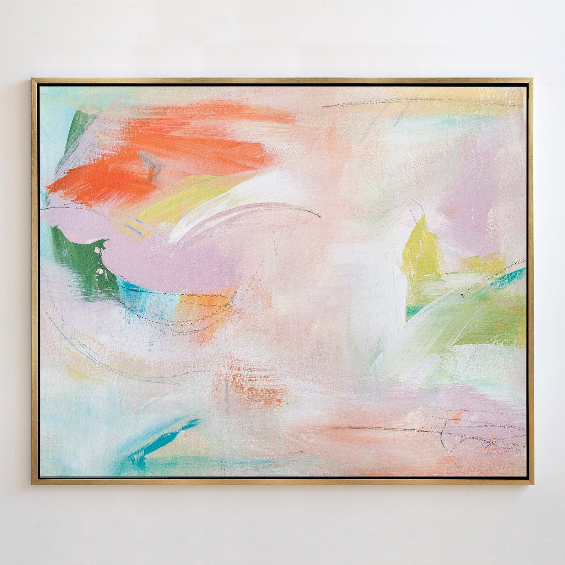 A dance of brushwork, “Wishful Thoughts No. 1” is a playful exploration of gestural marks and composition, suggestive of florals. Pairs beautifully with “Wishful Thoughts No. 2”