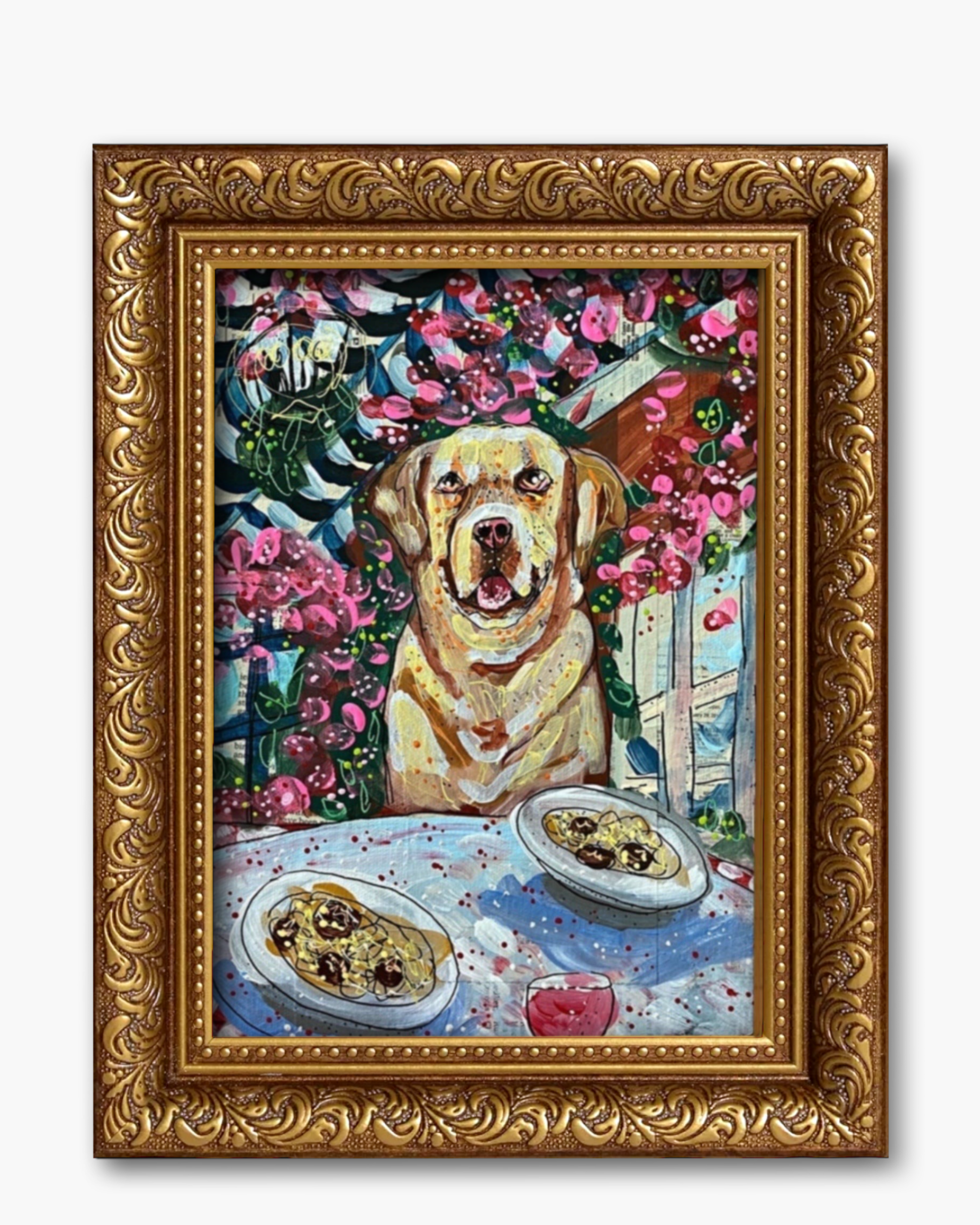 Yellow Labrador Dining Fine Art Magnet ( Large )