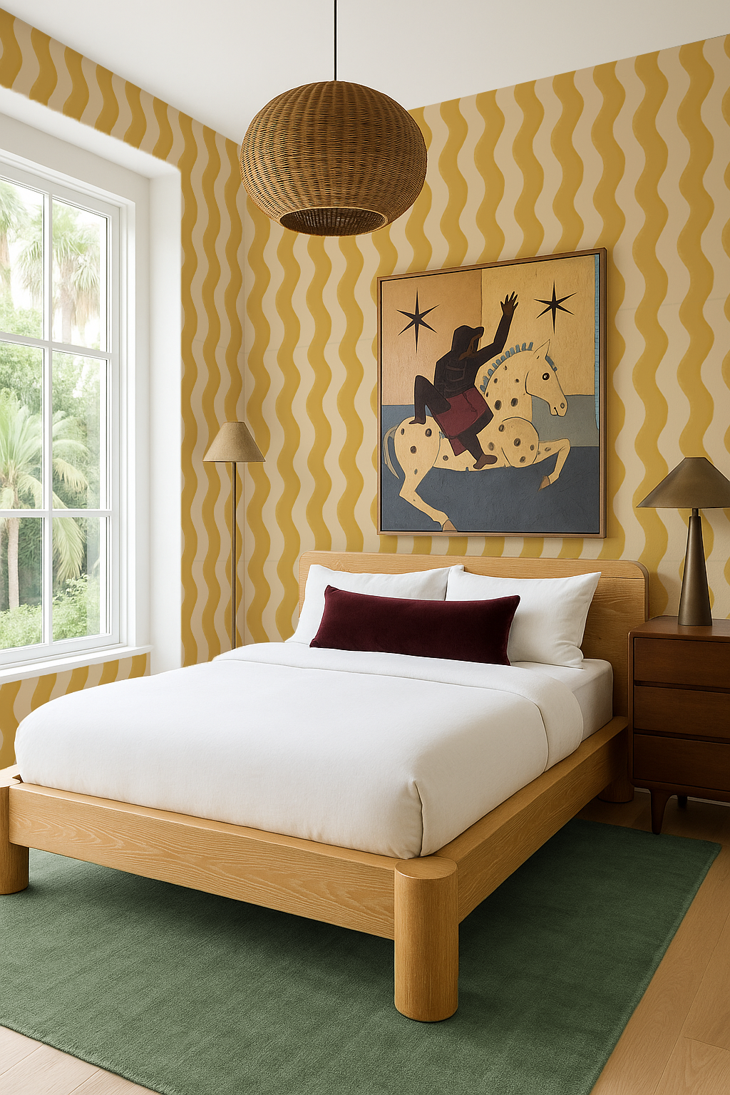 Bring a playful retro vibe to your space with the Ziggy Stripe Wallpaper in light apricot and mustard, illustrated by Samantha Santana. Featuring funky wavy stripes, this wallpaper is designed for easy installation with both peel-and-stick vinyl and traditional pasted options. Plus, it’s completely removable, making it perfect for renters or anyone who loves to refresh their walls with ease. Add a splash of fun and expert style to any room effortlessly!