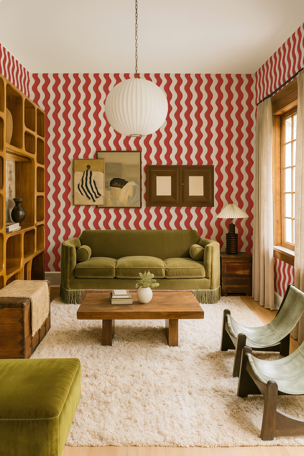 Bring a playful retro vibe to your space with the Ziggy Stripe Wallpaper in white and brick red, illustrated by Samantha Santana. Featuring funky wavy stripes, this wallpaper is designed for easy installation with both peel-and-stick vinyl and traditional pasted options. Plus, it’s completely removable, making it perfect for renters or anyone who loves to refresh their walls with ease. Add a splash of fun and expert style to any room effortlessly!