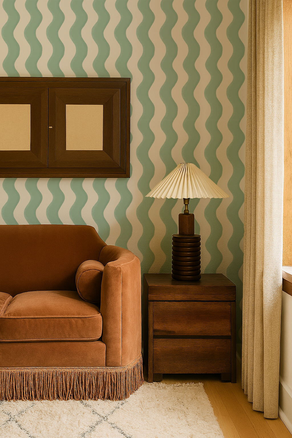 Bring a playful retro vibe to your space with the Ziggy Stripe Wallpaper in white and mint, illustrated by Samantha Santana. Featuring funky wavy stripes, this wallpaper is designed for easy installation with both peel-and-stick vinyl and traditional pasted options. Plus, it’s completely removable, making it perfect for renters or anyone who loves to refresh their walls with ease. Add a splash of fun and expert style to any room effortlessly!